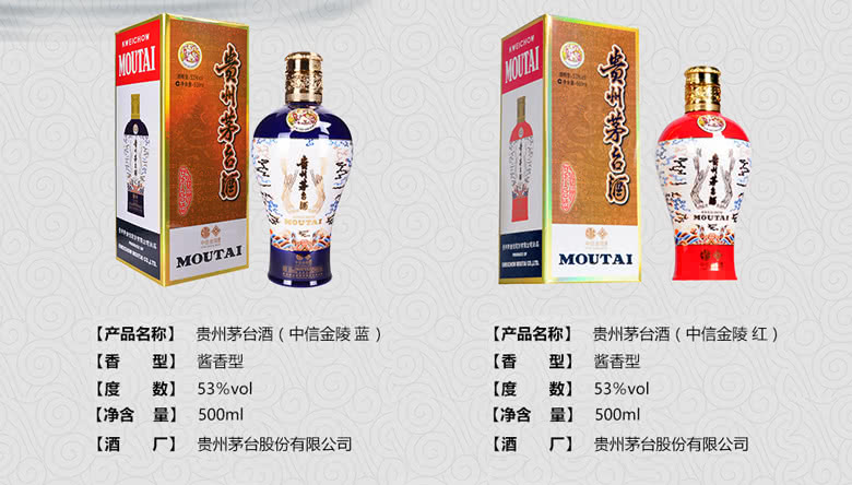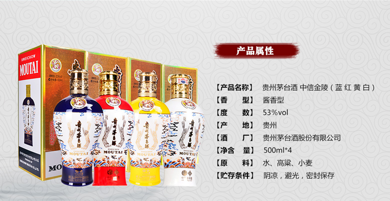 酱香型 茅台中信金陵 蓝 红 黄 白 53度 500ml 4瓶 白酒(2020新包装)